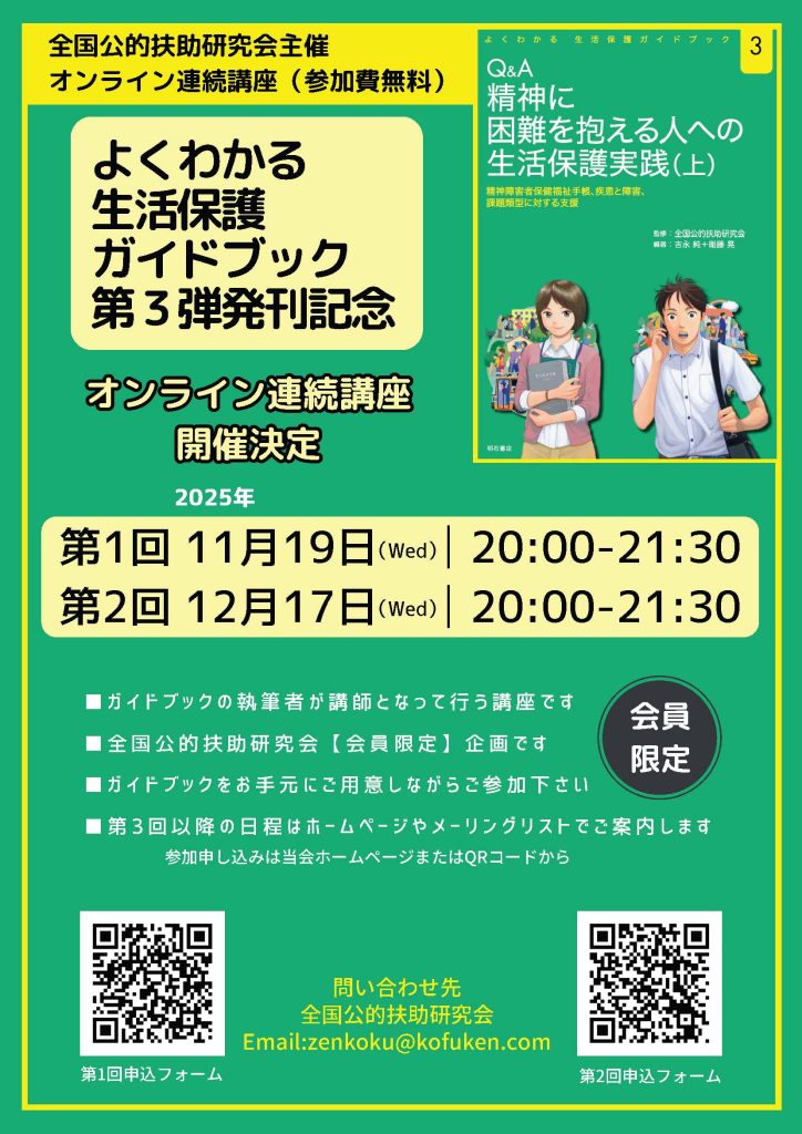 よくわかる生活保護ガイドブック・第3弾『Q&A精神に困難を感じる人への生活保護実践(上)』発刊記念